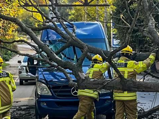 Дерево впало на електричні дроти та мікроавтобус Mercedes Sprinter, який у той момент рухався вулицею. Попри серйозність інциденту, жодна людина не отримала травм.