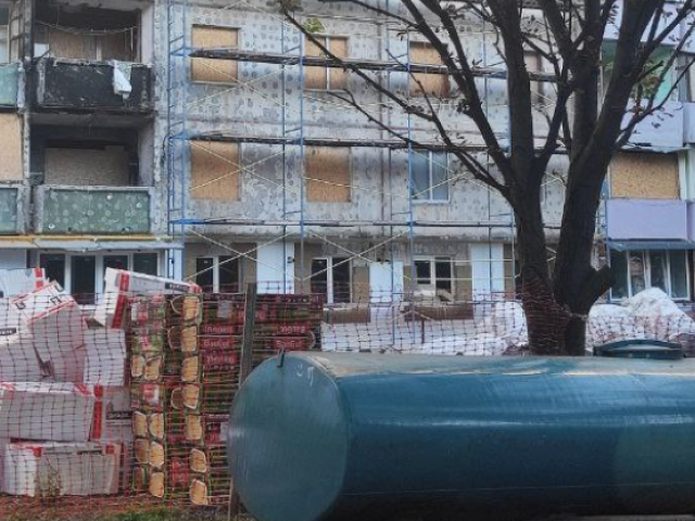 Будівельники приступили до відновлення фасаду, покрівлі та інших конструктивних елементів у 1-3 під'їздах. Контрактом передбачено завершення всього комплексу робіт до 15 грудня цього року.