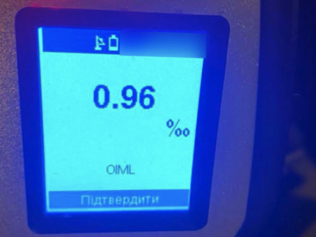 Під час спілкування поліцeйські помітили, що у керманича присутні характерні ознаки алкогольного сп'яніння. Громадянин погодився пройти огляд на стан сп'яніння на місці зупинки, за допомогою газоаналізатора Драгер. Результат позитивний — 0,96 проміле", - йдеться у повідомленні.
