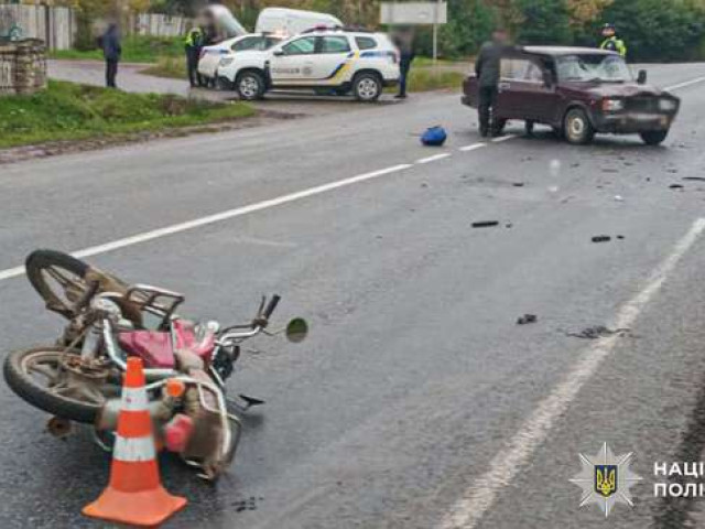Внаслідок аварії водій двоколісного транспортного засобу отримав тілесні ушкодження, його госпіталізували до медичного закладу.