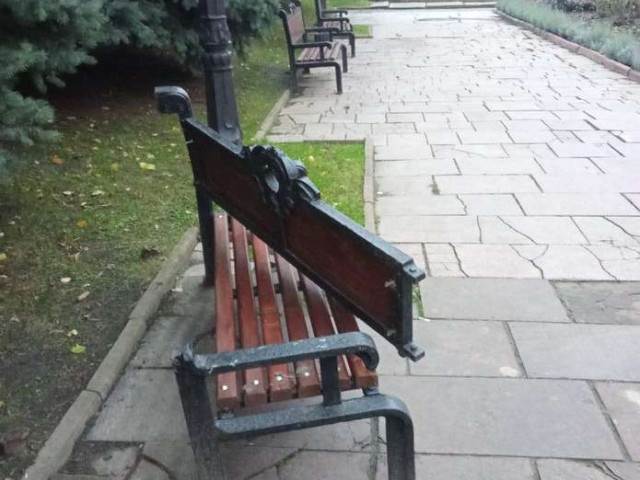 Вдень 14 жовтня працівники Тресту зеленого господарства та протизсувних робіт виявили пошкоджену лавку на Театральній площі.