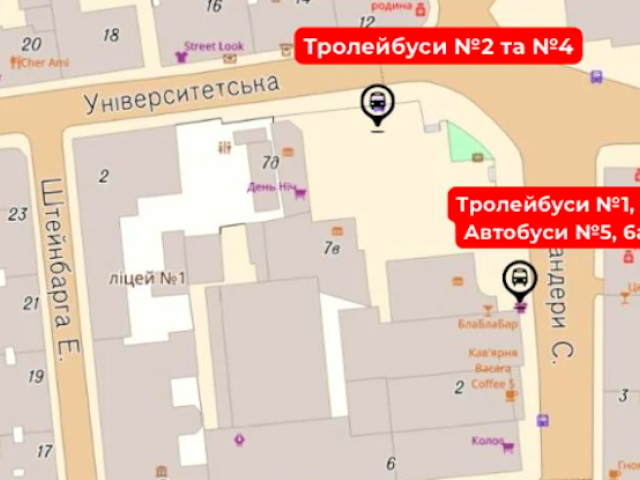 Зупинки транспорту були тимчасово переміщені з четверга, 2 жовтня