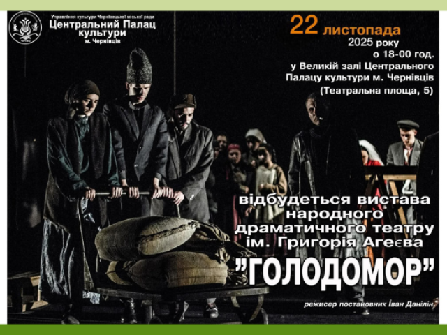 Виставу представить Народний драматичний театр імені Григорія Агєєва. Постановка відбудеться у залі Центрального палацу культури. Про це повідомляють у Чернівецькій міській раді.