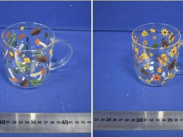 Йдеться про скляну чашку китайського походження, оздоблену квітами, грибами та листям, де встановлено перевищення норм міграції свинцю та кадмію, що становить небезпечний ризик для здоров’я людини.