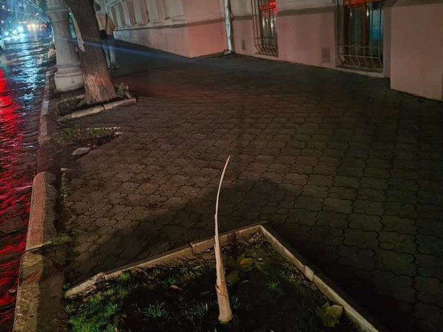 Неприємний інцидент стався у центрі міста. На вул. Головній, 107, невідомі зламали дерево та закопали його у сквері біля памʼятника Паулю Целану, просто посеред території.