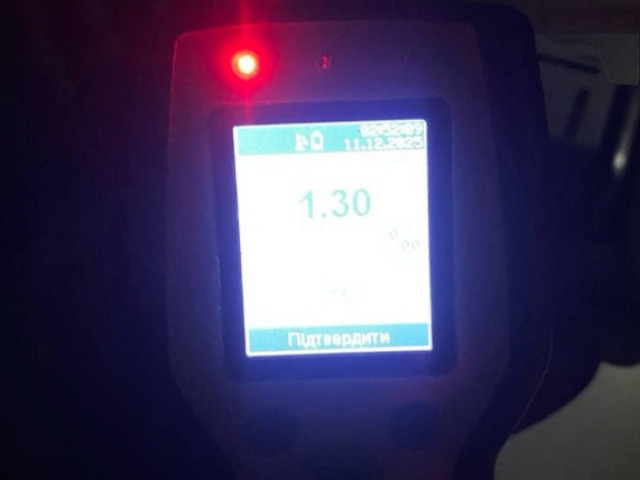 Чоловік пройшов огляд на стан сп'яніння на місці зупинки автомобіля. Результат позитивний — 1,30 проміле.