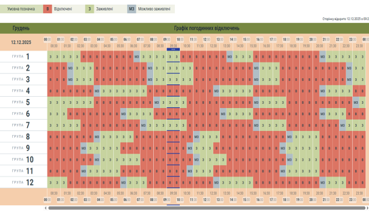 На Буковині оновили графік вимкнень на сьогодні, 12 грудня.
