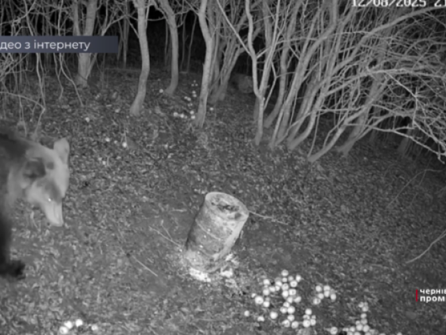 Ведмеді блукають у пошуках їжі. У Селятинському лісництві на Буковині у фотопастку потрапив клешоногий, який прийшов на підгодівельний майданчик. Фотокамера зафіксувала звіра пізно ввечері.