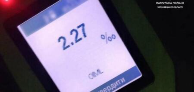 Алкотестер показав 2,27 проміле. Цей показник перевищує допустиму норму 0,2 проміле в понад 11 разів.