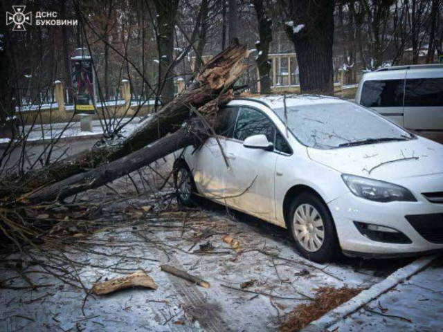 Зокрема, на одній з вулиць Чернівців дерево впало та пошкодило припаркований автомобіль.