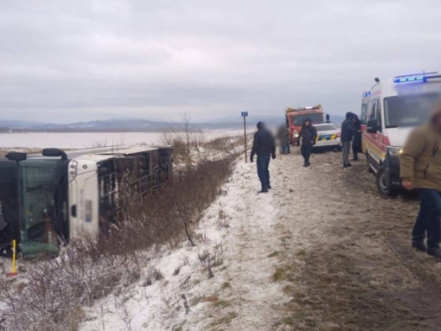 У Калуському районі Івано-Франківщини вдень 28 грудня перекинувся рейсовий автобус: загинув чоловік, 8 людей постраждали, серед них дитина.