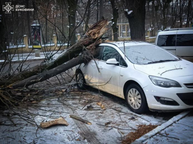 Зокрема, на одній з вулиць міста Чернівці дерево впало та пошкодило припаркований автомобіль.