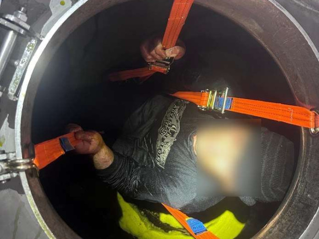 Під час огляду автомобіля прикордонний наряд виявив, що в одному з відсіків цистерни, окрім олії, зроблені спеціальні кріплення, на яких підвішений чоловік.