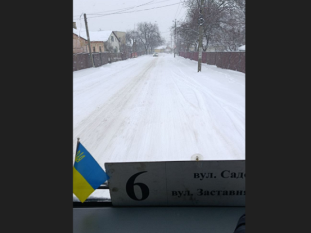 Через нерозчищену дорогу на Заставнянській у Чернівцях маршрутка не може зупинитись на зупинці, аби підібрати пасажирів.