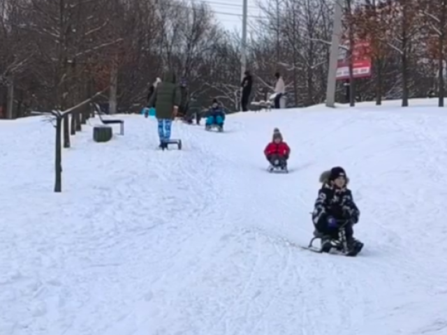 Справжня зима у Чернівцях: в парку Жовтневому сотні дітей катаються на санчатах