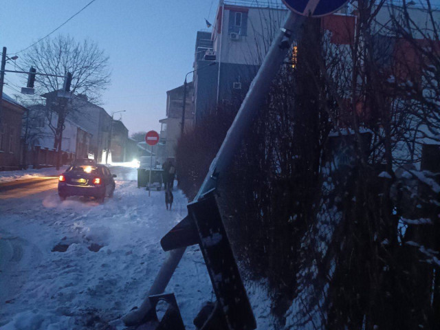 На перехресті вулиць Л. Кобилиці – Є. Ярошинської внаслідок дорожньо-транспортної пригоди було збито світлофор разом з опорою.