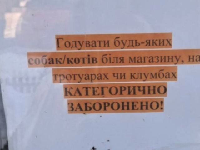 У Чернівцях біля одного з супермаркетів мережі «Нива маркет» з’явилося оголошення із забороною годувати безпритульних собак і котів поблизу закладу, на тротуарах та клумбах.