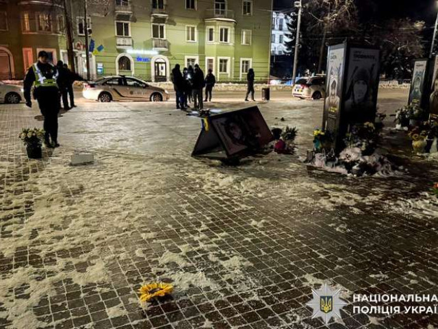 До поліції 16 січня близько 23 години надійшло повідомлення, що на Майдані Незалежності невідома жінка поводиться неадекватно та перекидає портрети полеглих на війні захисників.
