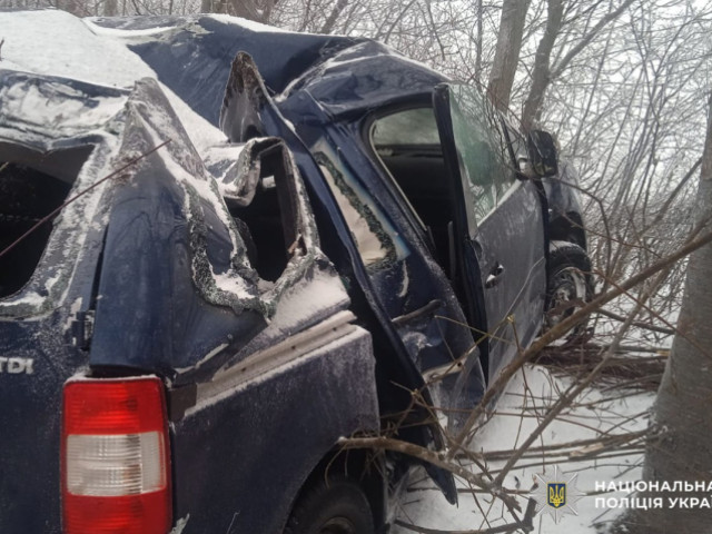 Автівка злетіла з дороги і врізалася в дерево