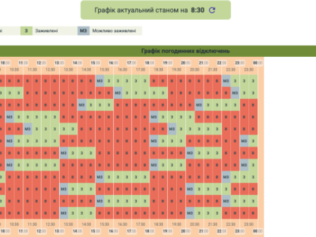 Графік може змінюватися залежно від оперативної ситуації в енергосистемі країни.