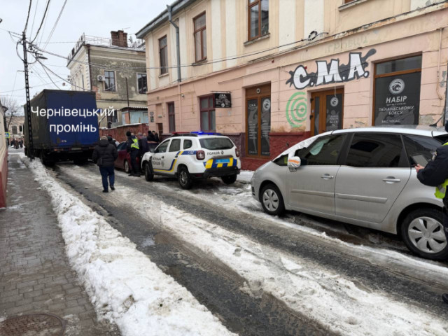 Вантажівка потрощила припарковані авто на вулиці Бетховена у Чернівцях. Рух вулицею був перекритий.