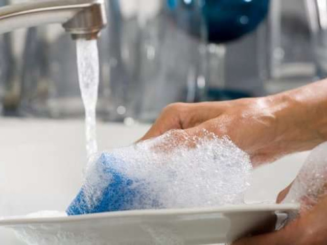 Якщо універсальний спрей не справляється з липким нальотом на шафках чи витяжці, час згадати про рідину для посуду. Вона чудово очищає: