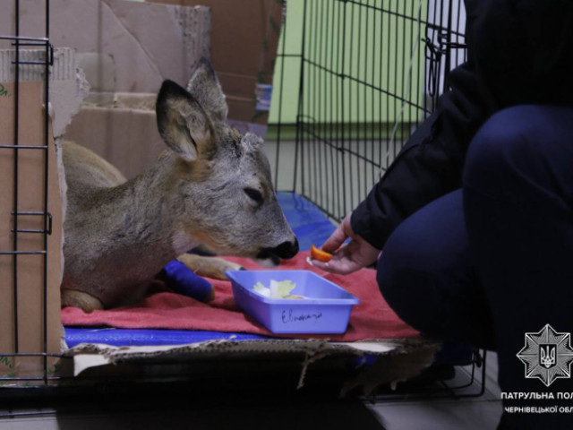 Днями у селі Тарашани чернівецькі патрульні Юрій Борук та Анжела Маковійчук отримали повідомлення, що на дорозі лежить поранена козуля.