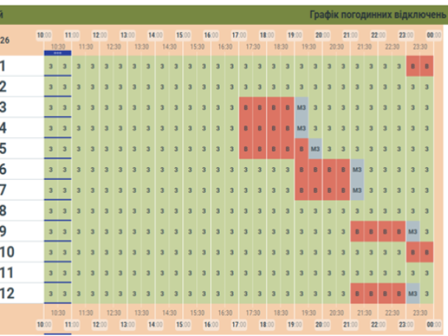 Викатимуть світло раз по 2-2,5 години