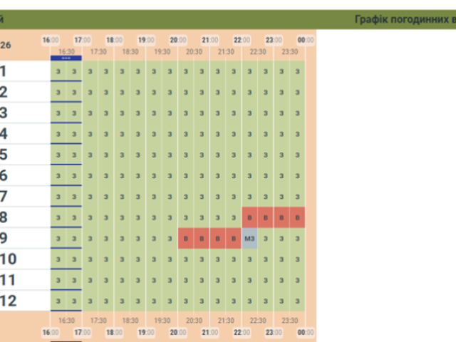 Вчергове оновлений графік вимкнень для Буковини на вечір вечір 11 лютого