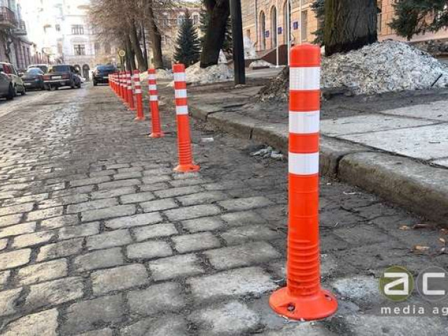 Днями на вулиці Грушевського, одразу навпроти приміщення Чернівецької ОВА, встановили 30 нових помаранчевих делініаторів.