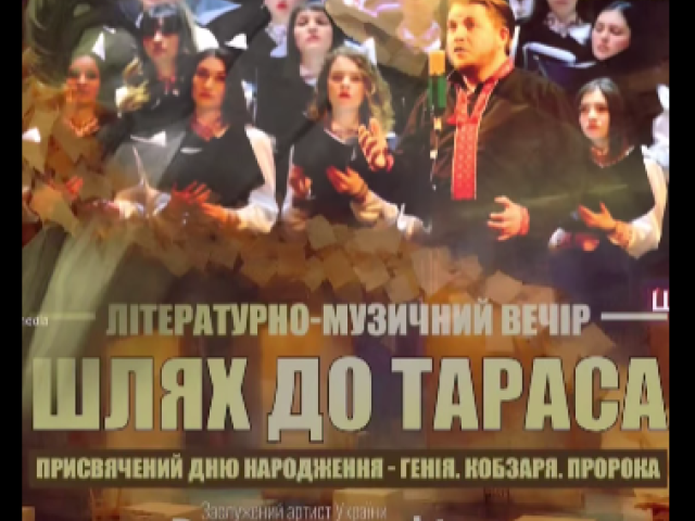9 березня у Чернівецька обласна філармонія ім. Дмитра Гнатюка відбудеться літературно-музичний вечір «Шлях до Тараса», присвячений дню народження українського поета, художника та мислителя Тарас Шевченко.