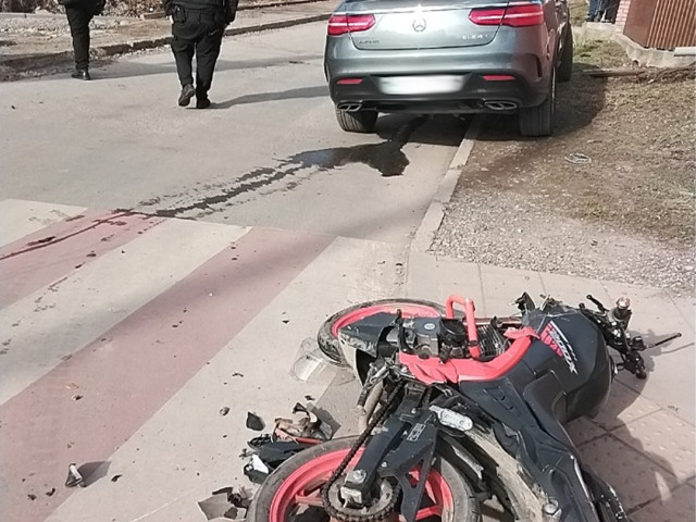 У результаті ДТП мотоцикліст отримав тілесні ушкодження. Бригада швидкої медичної допомоги доставила потерпілого у лікарню для наданн необхідної допомоги.