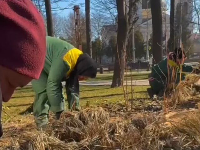 Працівники Чернівецького тресту зеленого господарства та ПЗР проводять сезонну обрізку декоративних злакових рослин на міських клумбах.