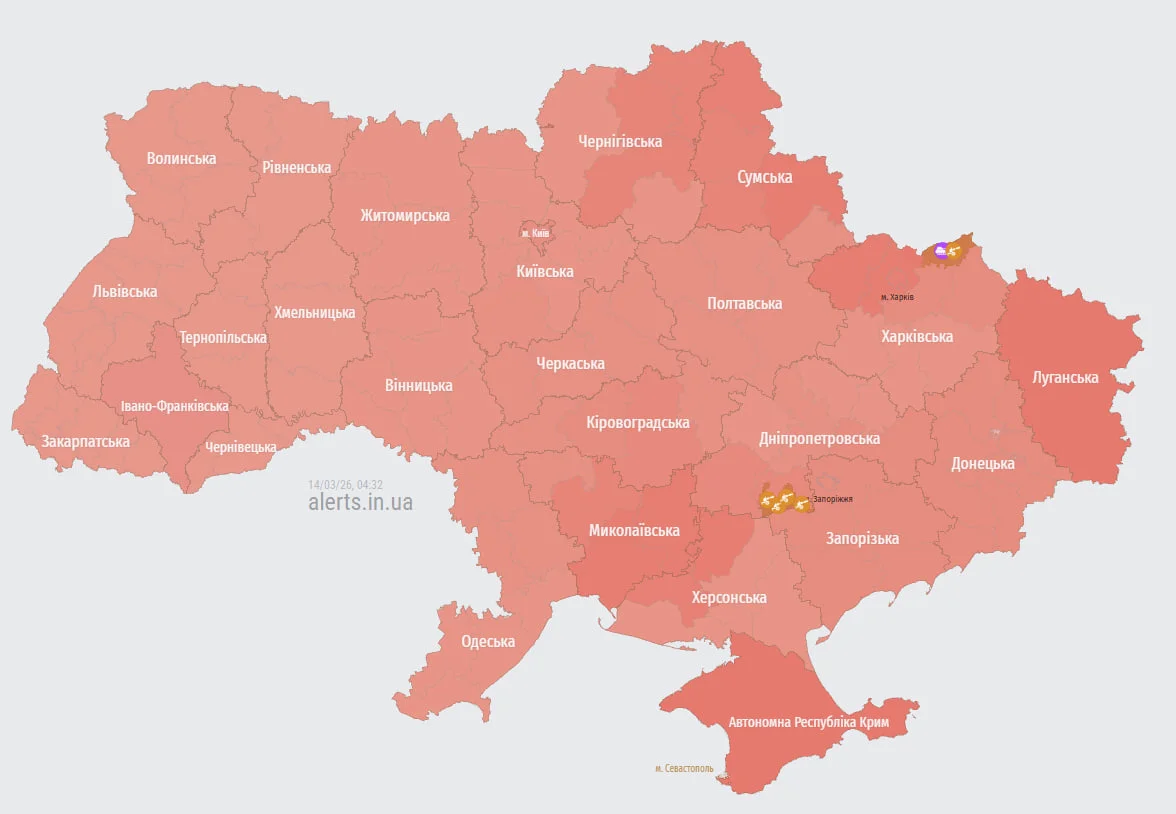 У ніч на 14 березня Росія здійснила комбінований удар по Україні із застосуванням ракет та понад 400 дронів.