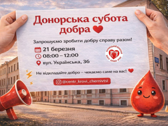 Про це повідомляє Чернівецький обласний центр служби крові.