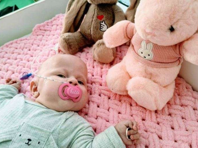 «Крім цього, Евеліна не могла самостійно дихати, їсти та мала проблеми з оченятами. У чотиримісячному віці офтальмологи виконали їй лазерну коагуляцію сітківки, щоб зупинити відшарування та врятувати зір. Все вдалося», - розповіли в лікарні.