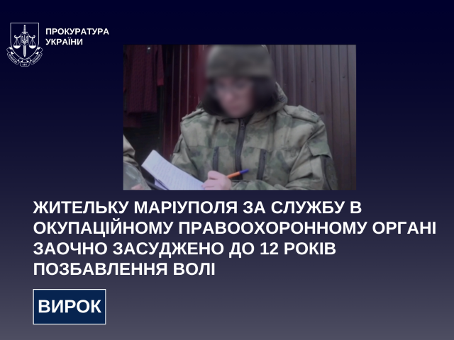 За публічного обвинувачення прокурорів Чернівецької обласної прокуратури 29-річну жительку Маріуполя визнано винною у зайнятті посади в незаконному правоохоронному органі, створеному на тимчасово окупованій території (ч. 7 ст. 111-1 КК України).