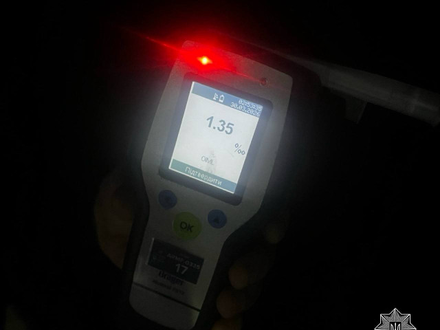 Під час спілкування з керманичем інспектори помітили характерні ознаки сп’яніння. Водій погодився пройти огляд на місці зупинки. Результат тесту показав 1,35 проміле алкоголю в крові, що більш ніж у шість разів перевищує допустиму норму.