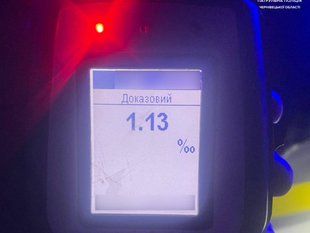 Під час спілкування з водієм інспектори виявили у нього характерні ознаки алкогольного сп’яніння. Чоловіку запропонували пройти огляд на місці за допомогою приладу «Драгер», на що він погодився. Результат виявився позитивним — 1,13 проміле.