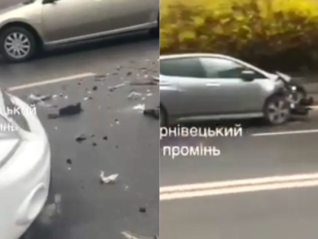 У Чернівцях на Героїв Майдану зіткнулися мікроавтобус і легковик. Аварія сталася неподалік перехрестя з вулицею Щербанюка. Шматки бампера від автівки Nissan розлетілися по асфальту.