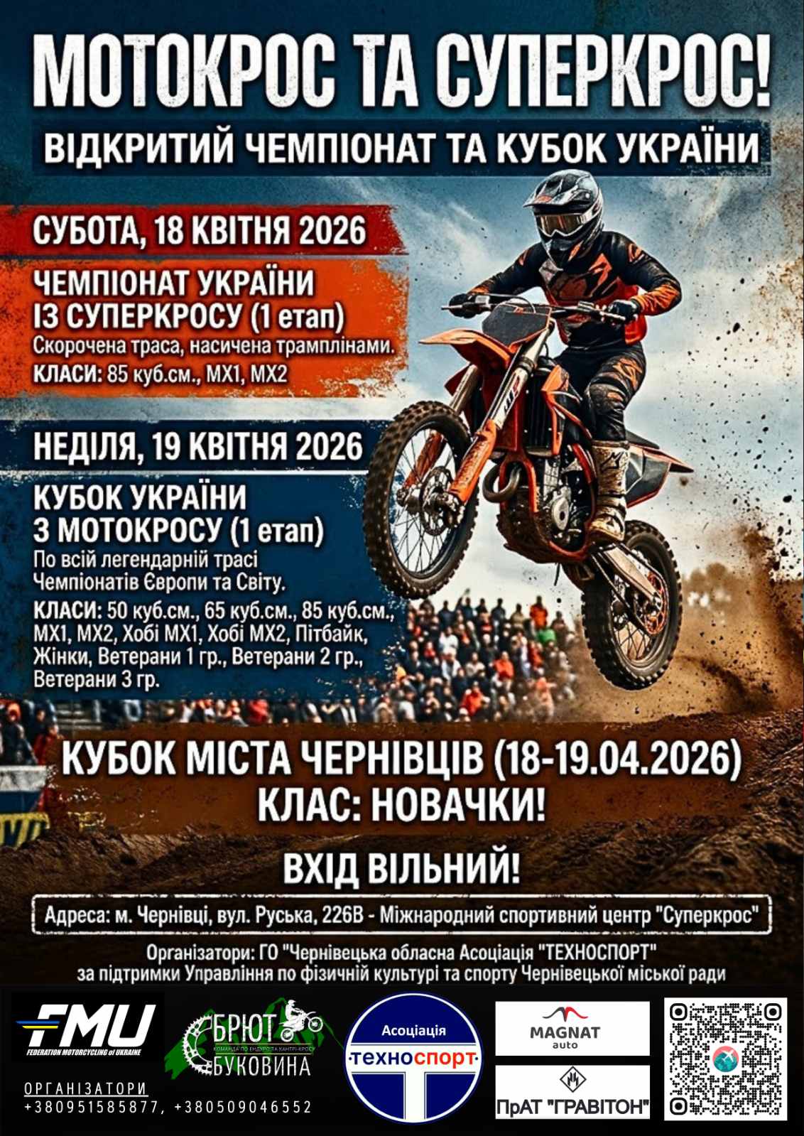 18–19 квітня у Чернівцях пройде відкритий чемпіонат та Кубок України з мотокросу і суперкросу.