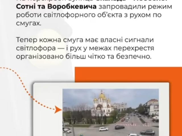 У Чернівцях на перехресті вулиць Скальда – Небесної Сотні та Воробкевича запровадили новий режим роботи світлофора — рух по смугах.